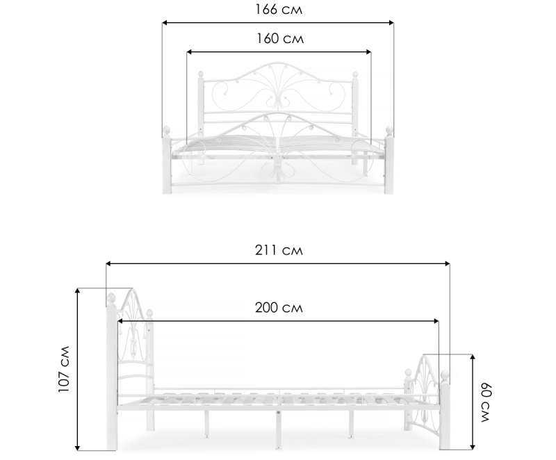 Кровать Мэри 2 160х200 черная (166x211x107).