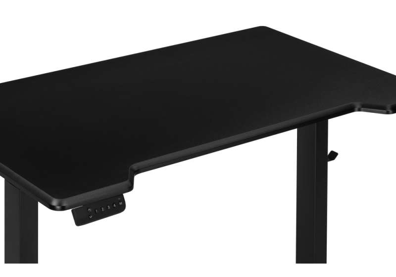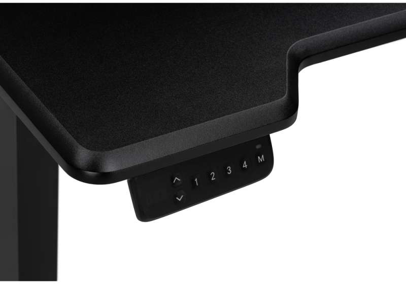Стол регулируется по высоте при помощи механизма с электроприводом. Механизм оснащен четырьмя предзаписанными уровнями высоты, а мануальный режим позволяет выставить и сохранить индивидуальную высоту. Механизм работает от сети. Максимальная нагрузка на механизм подъема: 80 кг. Расстояние между ножек: 89 см. Толщина ножек: 8,5 см. Диаметр отверстия под провода: 6 см.