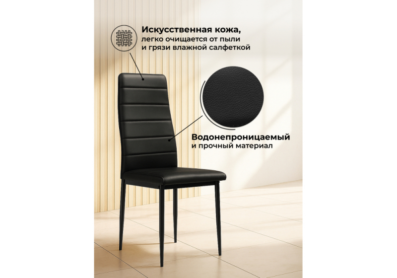 Стул на металлокаркасе DC2-001 искусственная кожа черный / черный (40x48x97)